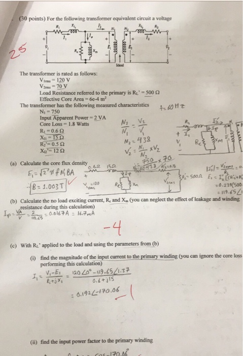 Solved 30 Points For The Following Transformer Equivalent Chegg Com