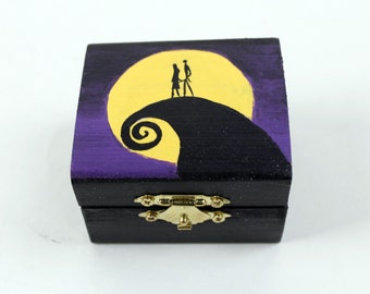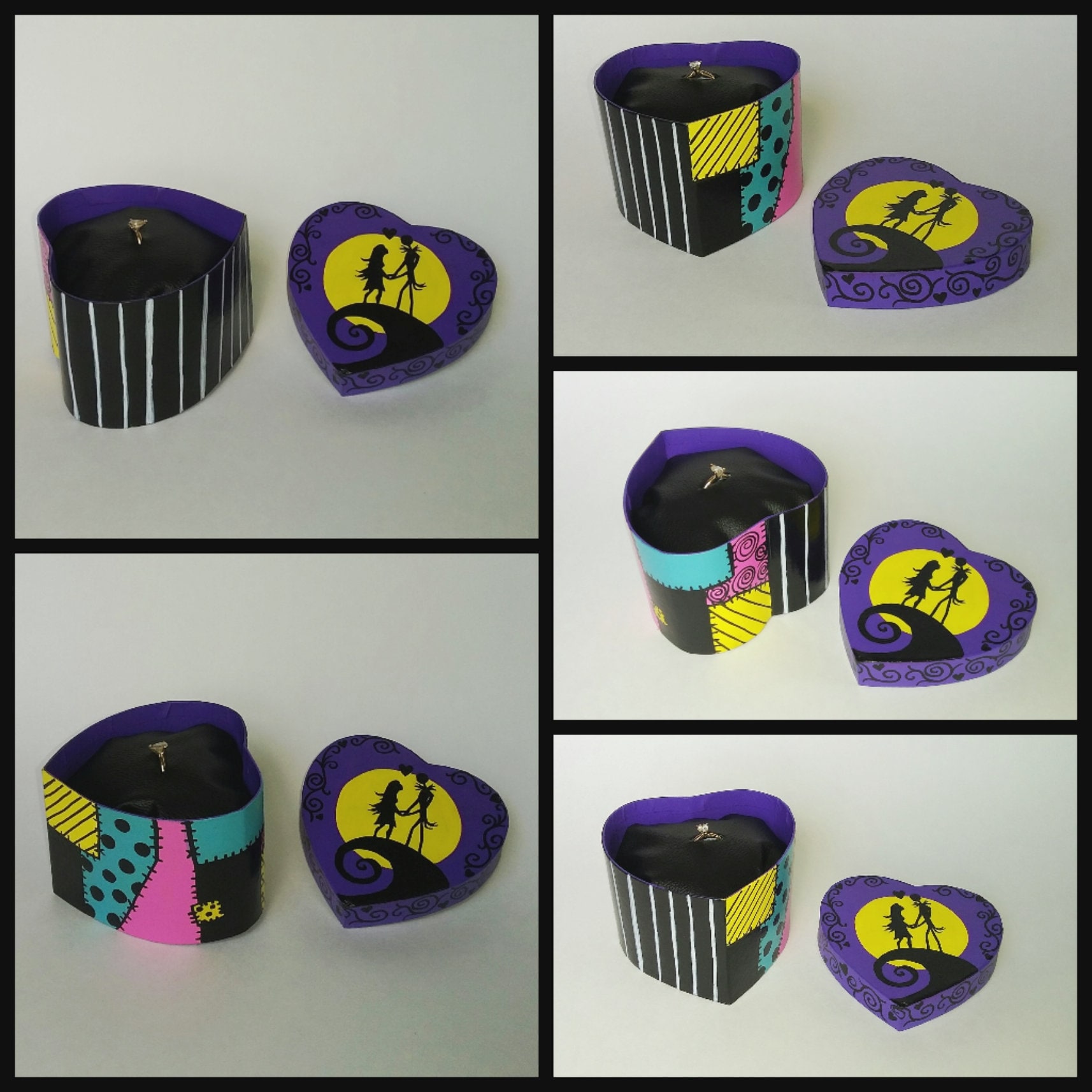 Ring Box Nightmare Before Christmas Painted Heart Shaped Jewelry Trinket Keepsake Holder Jack Sally Skellington Engagement Wedding Etsy